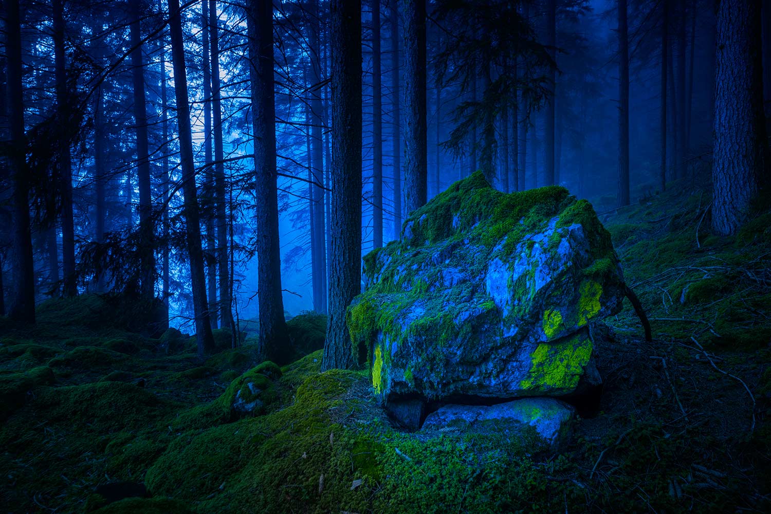 Wald mit Stein und Moos, Foto Christof Hellweger