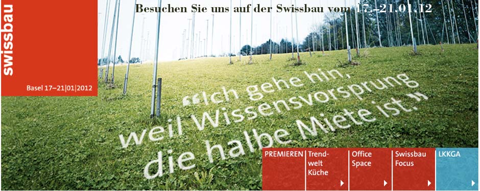 Die Firma Larix ist auf der Swissbau 2012 in Basel vom 17.01–21.01.12 auf dem Südtiroler Gemeinschaftsstand vertreten. Wir freuen uns auf Ihren Besuch!